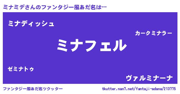 | 可愛いあだ名 | 『ミんミん』『ミナミデママ』 |