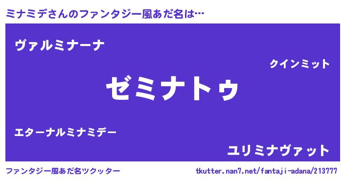 | ポケモン風あだ名 | 『ミナセウス』『ミーナイ』 |