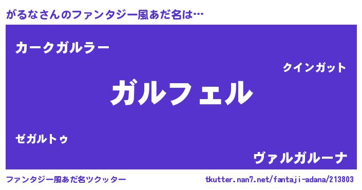 | 意味不明あだ名 | 『ペロリンがるな』『自称がるな』 |