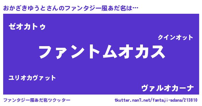 | 男性向けラノベタイトル風あだ名 | 『ダンジョンにおかざきゆうとを求めるのは間違っているだろうか』 |
