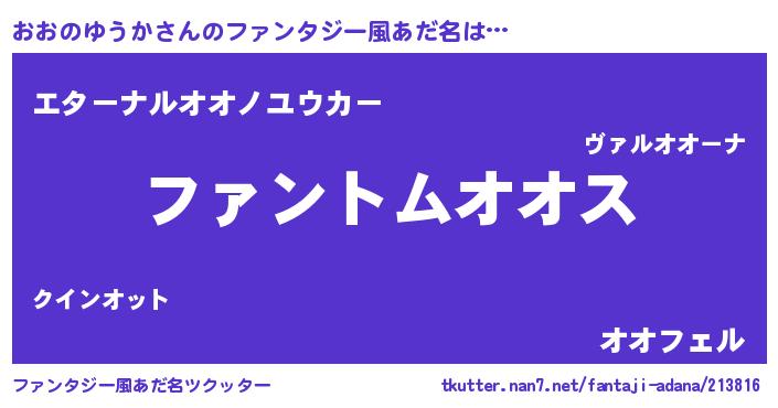 | 意味不明あだ名 | 『とにかく怪しいおおのゆうか』 |