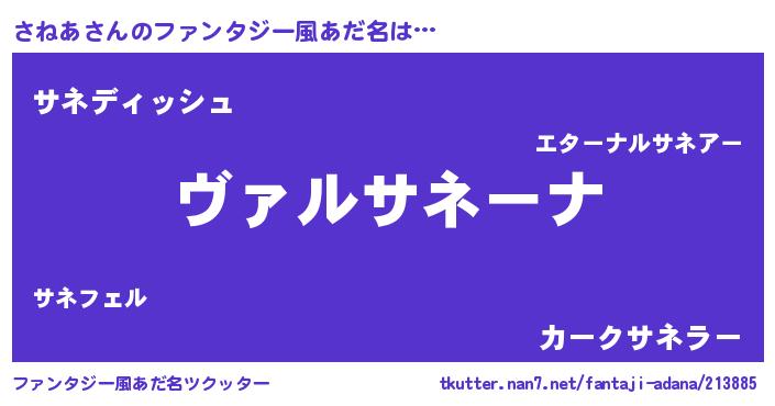 | 男性向けラノベタイトル風あだ名 | 『魔弾の王とさねあ』 |