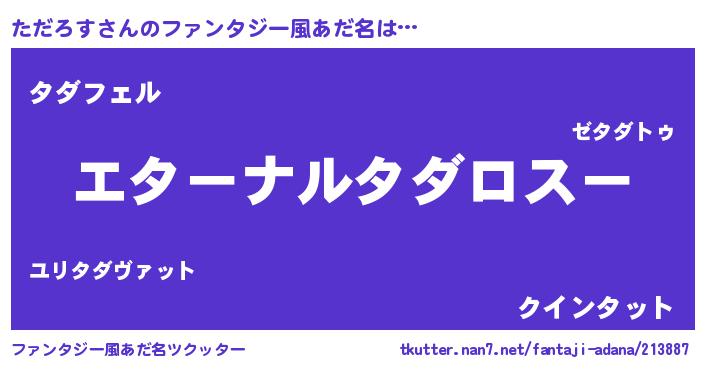 | 意味不明あだ名 | 『ただろすフォーエバー』『自称ただろす』 |