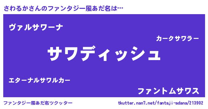 | 胡散臭い通販商品みたいなあだ名 | 『来世でも幸せになれる水素水…その名も「さわるか」』 |