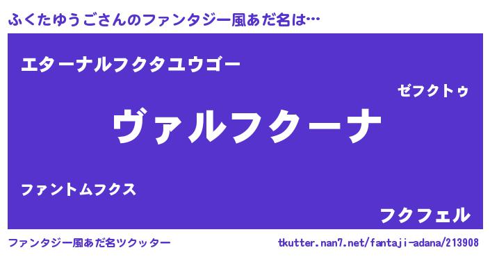 | 男性向けラノベタイトル風あだ名 | 『魔弾の王とふくたゆうご』 |