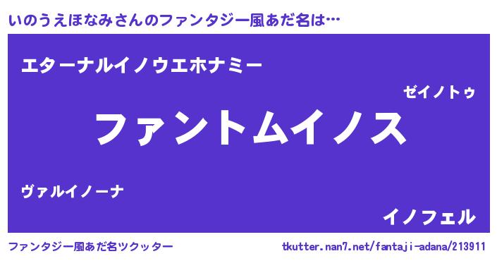| 男性向けラノベタイトル風あだ名 | 『いのうえほなみの嫁は女の子じゃないと思った?』 |