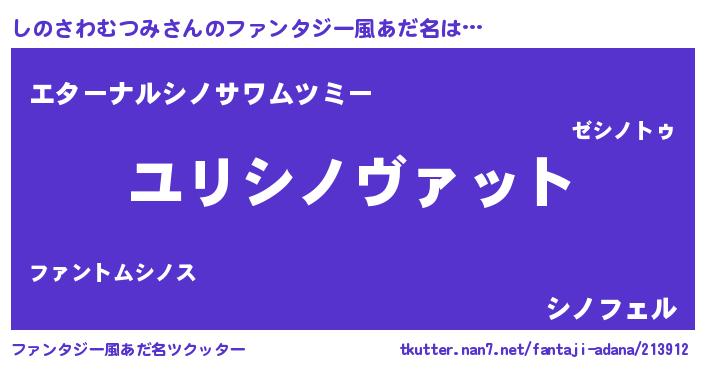 | 男性向けラノベタイトル風あだ名 | 『シノサワムツミスレイヤー』 |