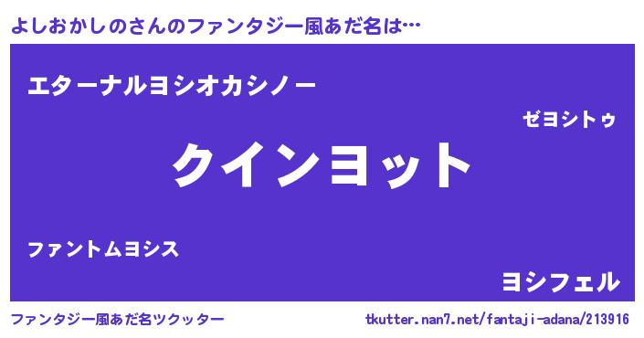 | 男性向けラノベタイトル風あだ名 | 『よしおかしのに滅ぼされるだけの簡単なお仕事です』 |