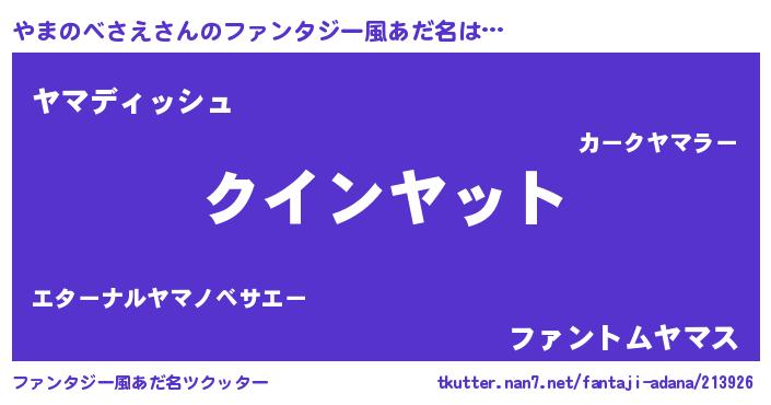 | 女子向けラノベタイトル風あだ名 | 『やまのべさえ夫妻のなれそめ』 |