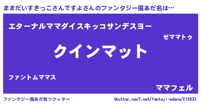 | ヒーロー風カッコイイあだ名 | 『天空の使者ままだいすきっこさんですよ』 |