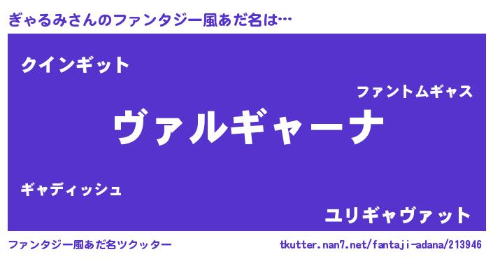 | 男性向けラノベタイトル風あだ名 | 『魔弾の王とぎゃるみ』 |