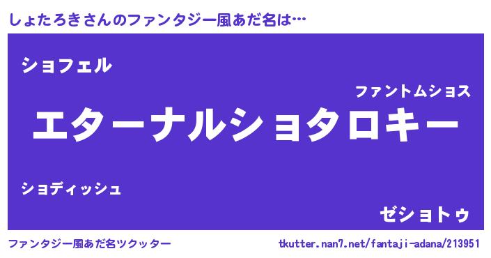 | 女子向けラノベタイトル風あだ名 | 『しょたろきの雑貨屋さん』 |
