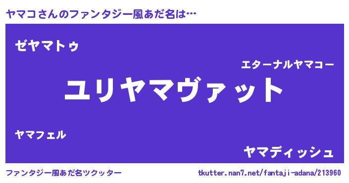 | 料理風あだ名 | 『ヤマコごはん』『満腹ヤマコマフィン』 |