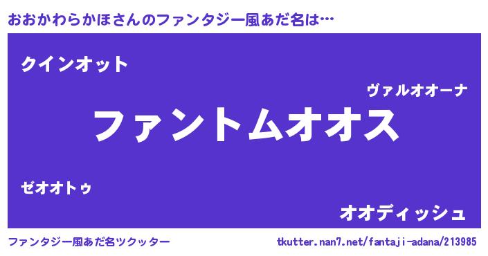 | ポケモン風あだ名 | 『ヒオオカワラカホ』『オックウザ』 |