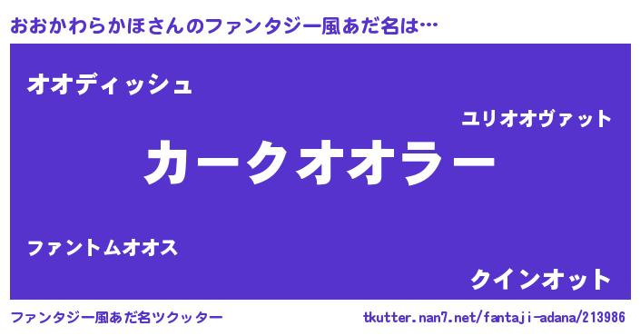 | 意味不明あだ名 | 『永久保存おおかわらかほ』 |