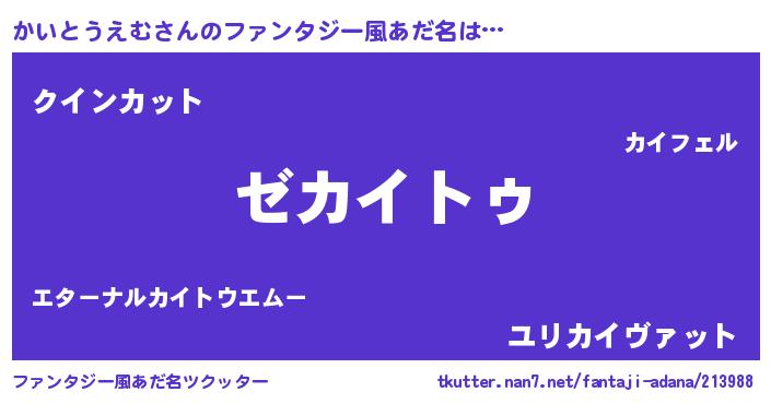 | 男性向けラノベタイトル風あだ名 | 『かいとうえむに滅ぼされるだけの簡単なお仕事です』 |