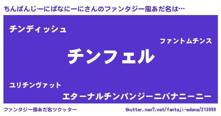 | 男性向けラノベタイトル風あだ名 | 『ちんぱんじーにばなにーにの憂鬱』 |