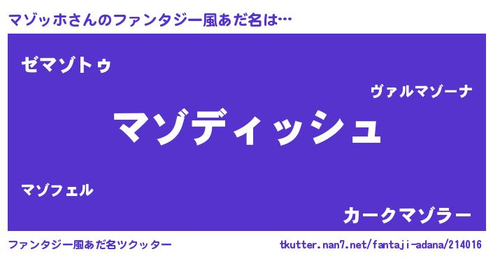 | ヘコむあだ名 | 『マゾッホ(笑)』『マゾにー』 |