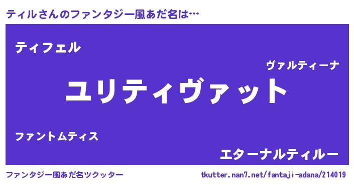 | 男性向けラノベタイトル風あだ名 | 『ティルスレイヤー』『ティルの憂鬱』 |