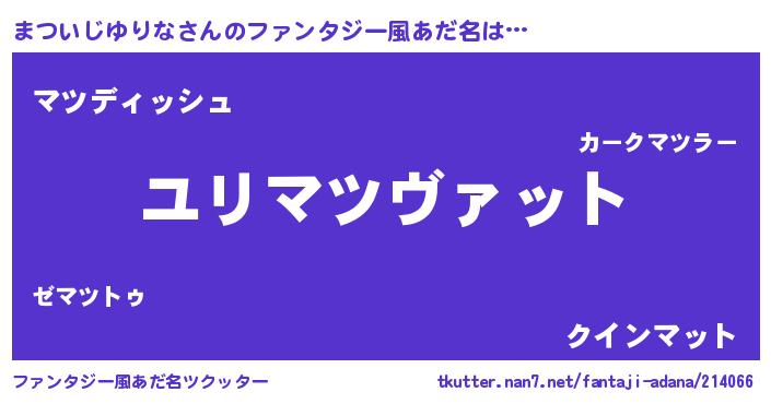 | 伝説のあだ名 | 『古より伝わる勇者まついじゆりな』 |