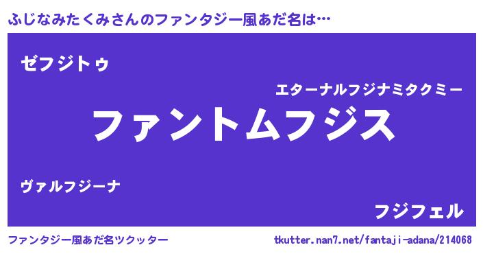 | 男性向けラノベタイトル風あだ名 | 『ダンジョンにふじなみたくみを求めるのは間違っているだろうか』 |