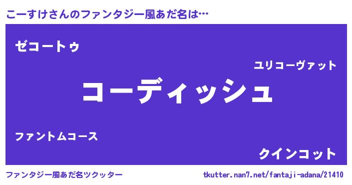 | 女子向けラノベタイトル風あだ名 | 『こーすけの契約王妃』 |