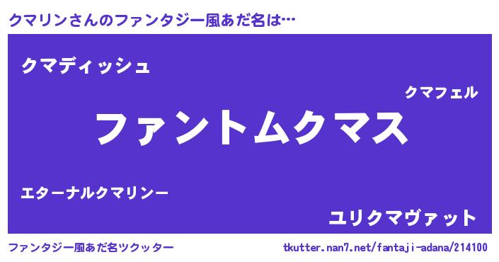 | 男性向けラノベタイトル風あだ名 | 『ダンジョンにクマリンを求めるのは間違っているだろうか』 |