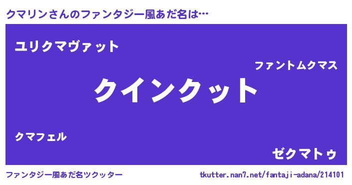 | 女子向けラノベタイトル風あだ名 | 『クマリン恋絵巻』 |