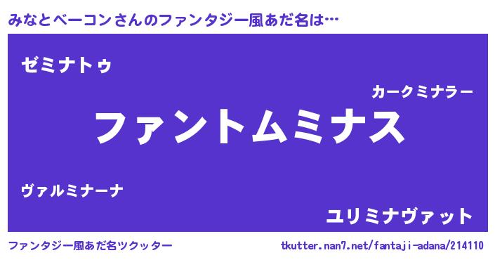 | 女子向けラノベタイトル風あだ名 | 『みなとベーコンは平凡を望む』 |