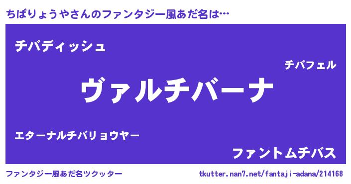 | 意味不明あだ名 | 『住所不定無職ちばりょうや(4歳)』 |