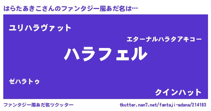 | 肩書あだ名 | 『はらたあきこCEO』『はらたあきこ少佐』 |