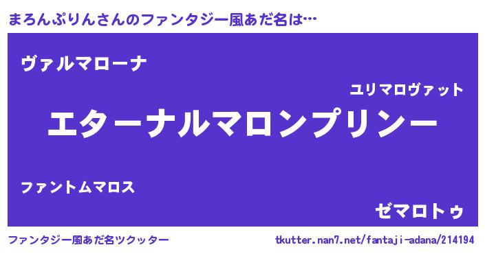 | 欧米人風あだ名 | 『まろんぷりんクリステル』 |