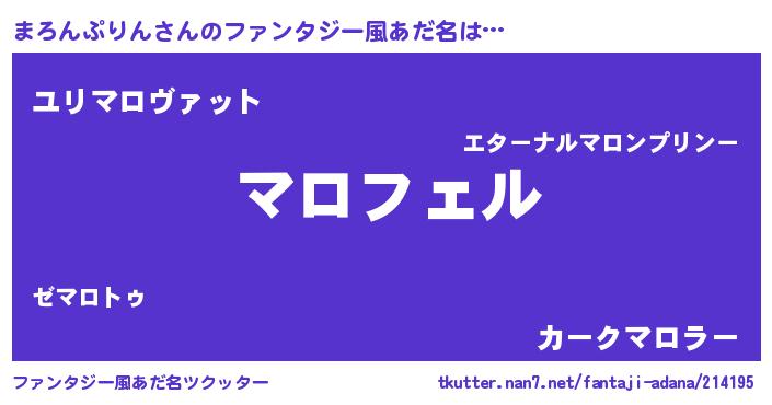 | 欧米人風あだ名 | 『マイケルまろんぷりん』 |