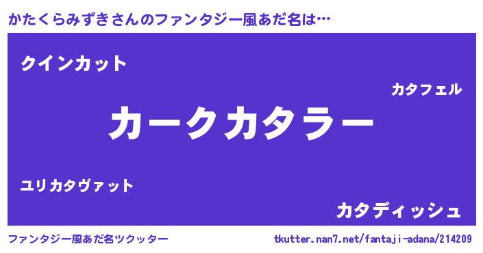 | ヘコむあだ名 | 『かたくらみずき(小並感)』『かたにー』 |