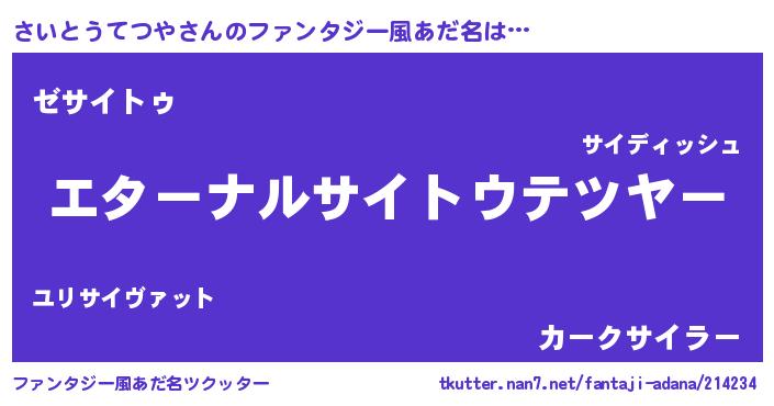 | 女子向けラノベタイトル風あだ名 | 『さいとうてつやの雑貨屋さん』 |