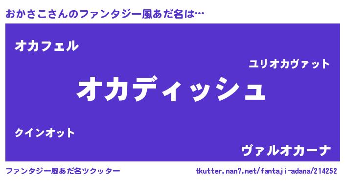 | 男性向けラノベタイトル風あだ名 | 『おかさこという概念が存在しない退屈な世界 』 |