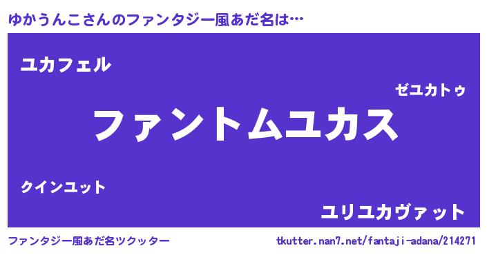 | ポケモン風あだ名 | 『ヒユカウンコ』『ユカチュウ』 |