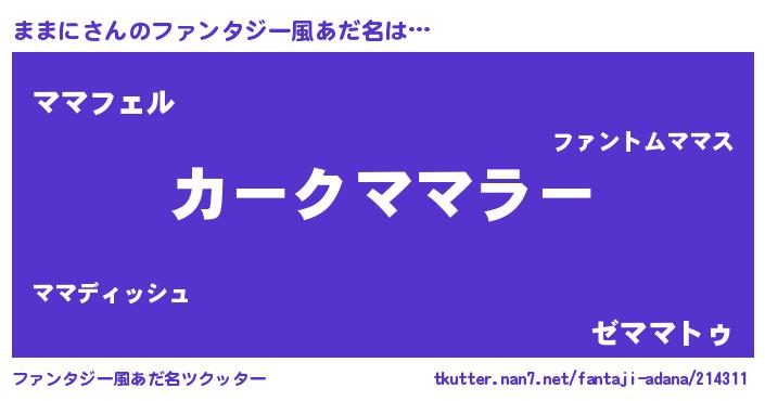 | ヘコむあだ名 | 『ままにー』『ままぷりん』 |