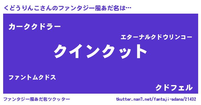 | 女子向けラノベタイトル風あだ名 | 『くどうりんこ夫妻のなれそめ』 |