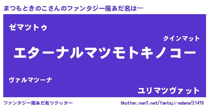 | 女子向けラノベタイトル風あだ名 | 『まつもときのこの雑貨屋さん』 |