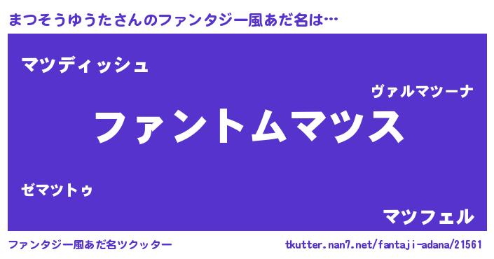 | 意味不明あだ名 | 『とにかく怪しいまつそうゆうた』 |