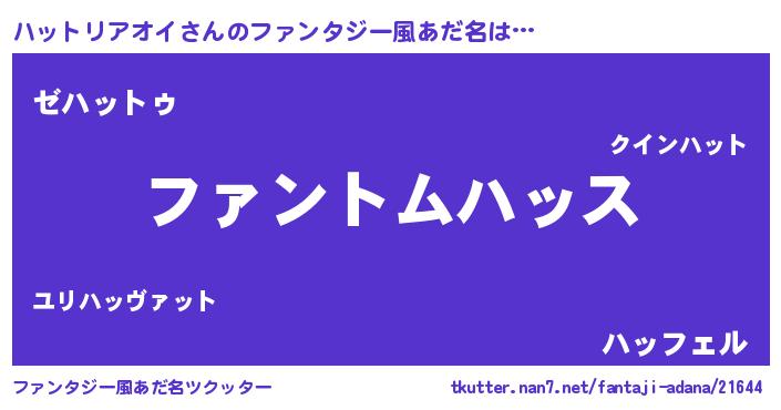 | ポケモン風あだ名 | 『ヒハットリアオイ』『ハッセウス』 |