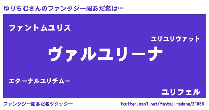 | 意味不明あだ名 | 『住所不定無職ゆりちむ(1歳)』 |