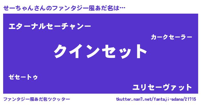 | ヒーロー風カッコイイあだ名 | 『慈愛の使者せーちゃん』『炎刃騎士セー』 |
