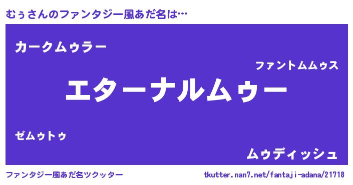 | 自動車の名前っぽいあだ名 | 『ムクア』『フェムーゥ』『デミム』 |