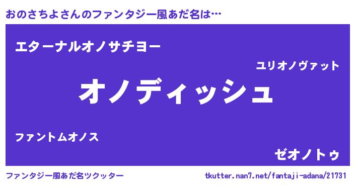 | ヒーロー風カッコイイあだ名 | 『ネオオノサチヨ』『魔戒騎士オノ』 |