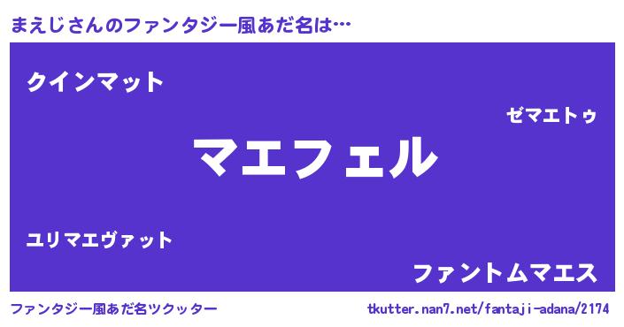 | 男性向けラノベタイトル風あだ名 | 『マエジアートオンライン』 |