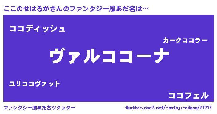 | ヒーロー風カッコイイあだ名 | 『仮面ココダー』『ネオココノセハルカ』 |