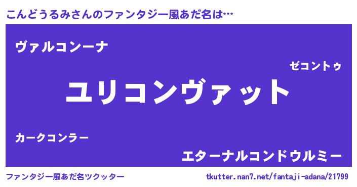 | 女子向けラノベタイトル風あだ名 | 『こんどうるみの玉の輿計画!』 |
