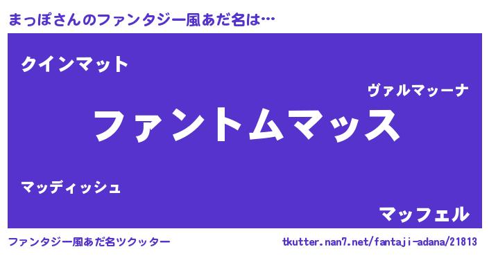 | 女子向けラノベタイトル風あだ名 | 『まっぽ様がみてる』『死神まっぽの再婚』 |